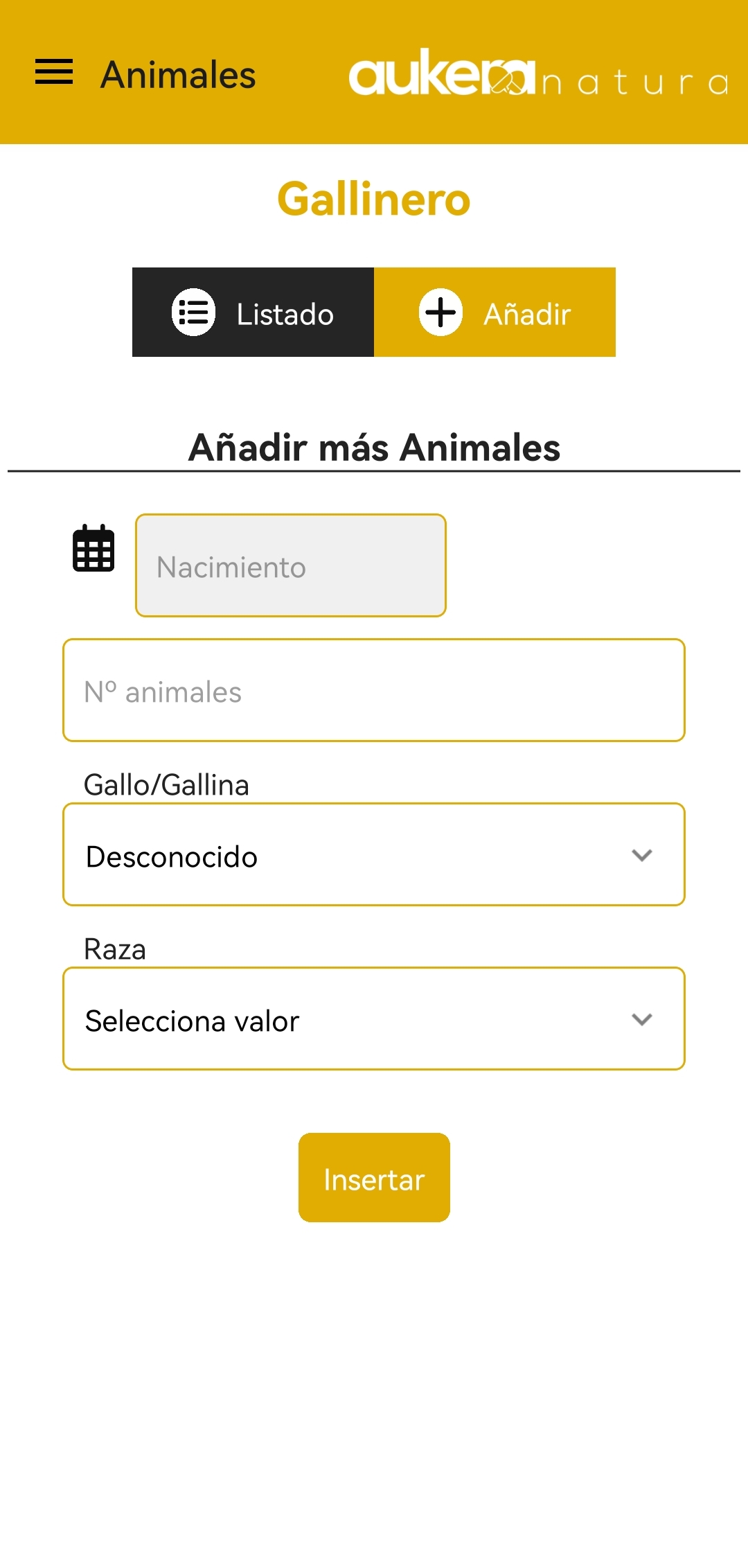 En esta sección podrás registrar todos los animales que componen tu gallinero.