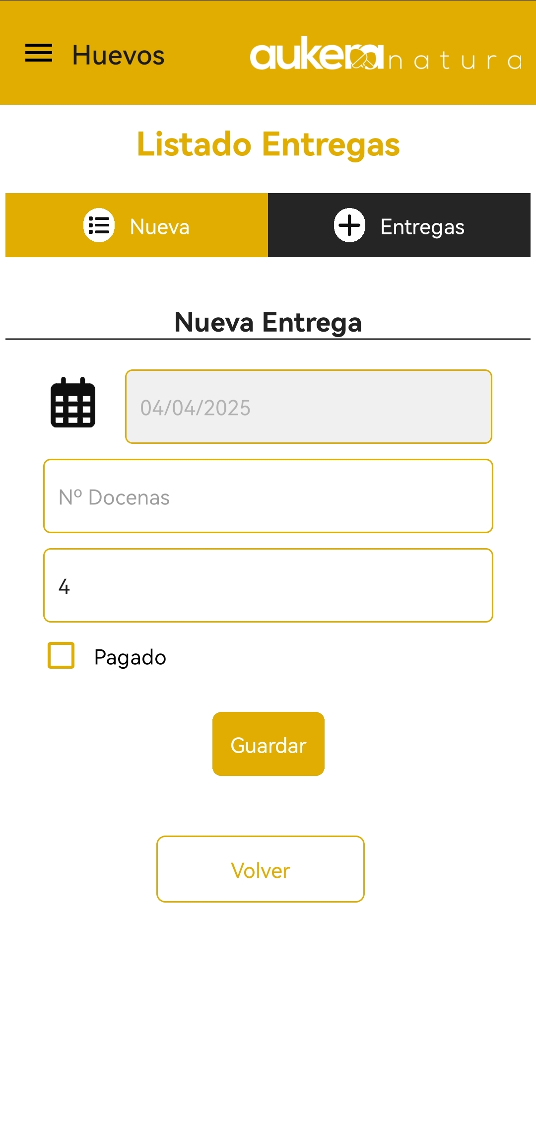 Al registrar una nueva entrega podrás añadir el número de docenas permitiéndose añadir por ejemplo media docena poniendo 0.5 en el campo "Número de docenas".