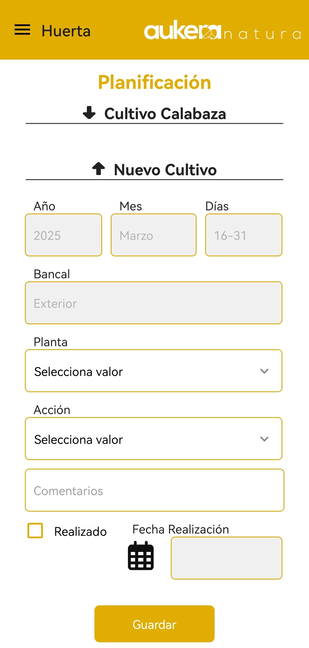 Dentro de las funcionalidades se podrán gestionar los bancales en los que dividimos la huerta, las plantas que cultivamos y la planificación de cultivos a lo largo del año.