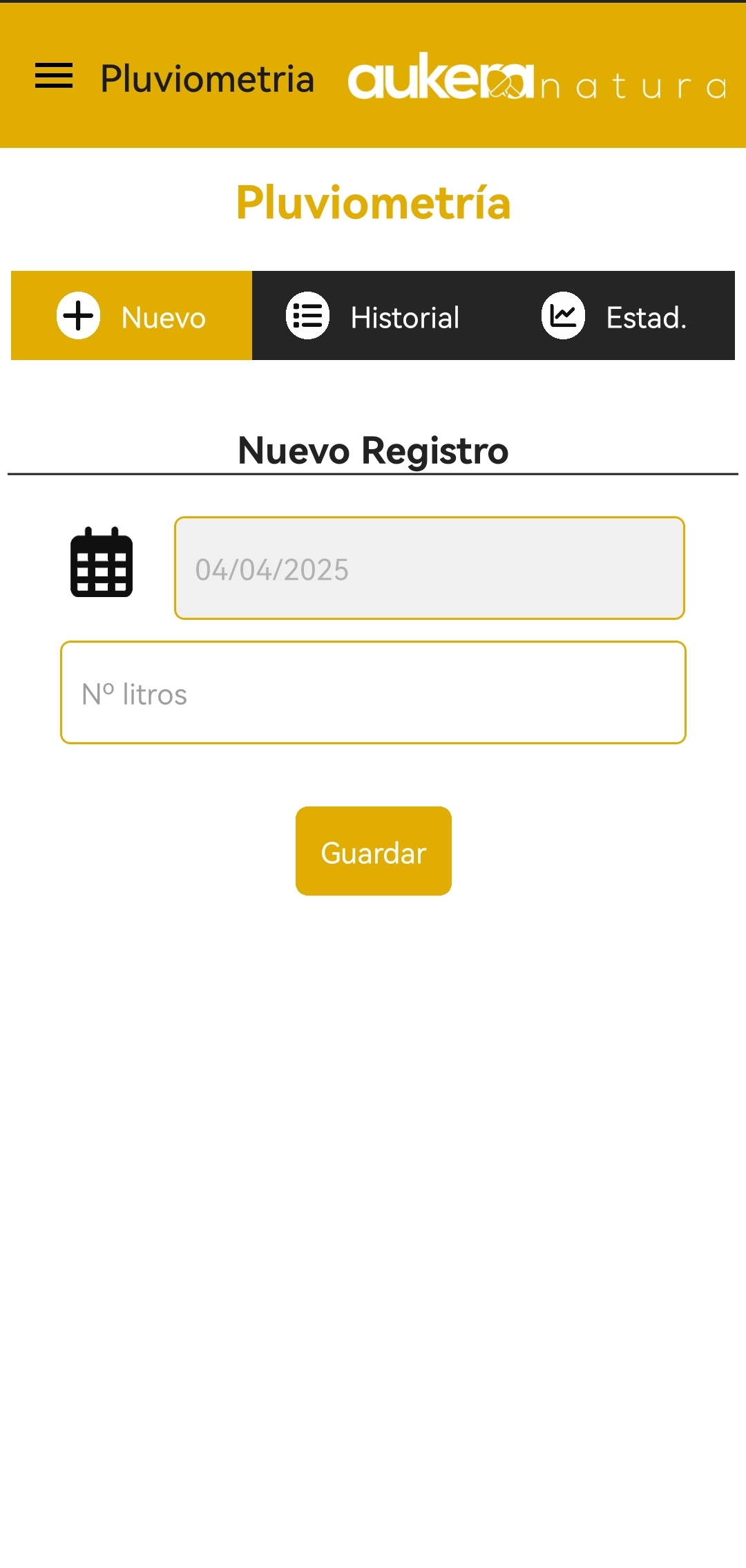 A la hora de añadir un nuevo registro, simplemente hay que añadir el día y el número de litros, permitiéndose números decimales.