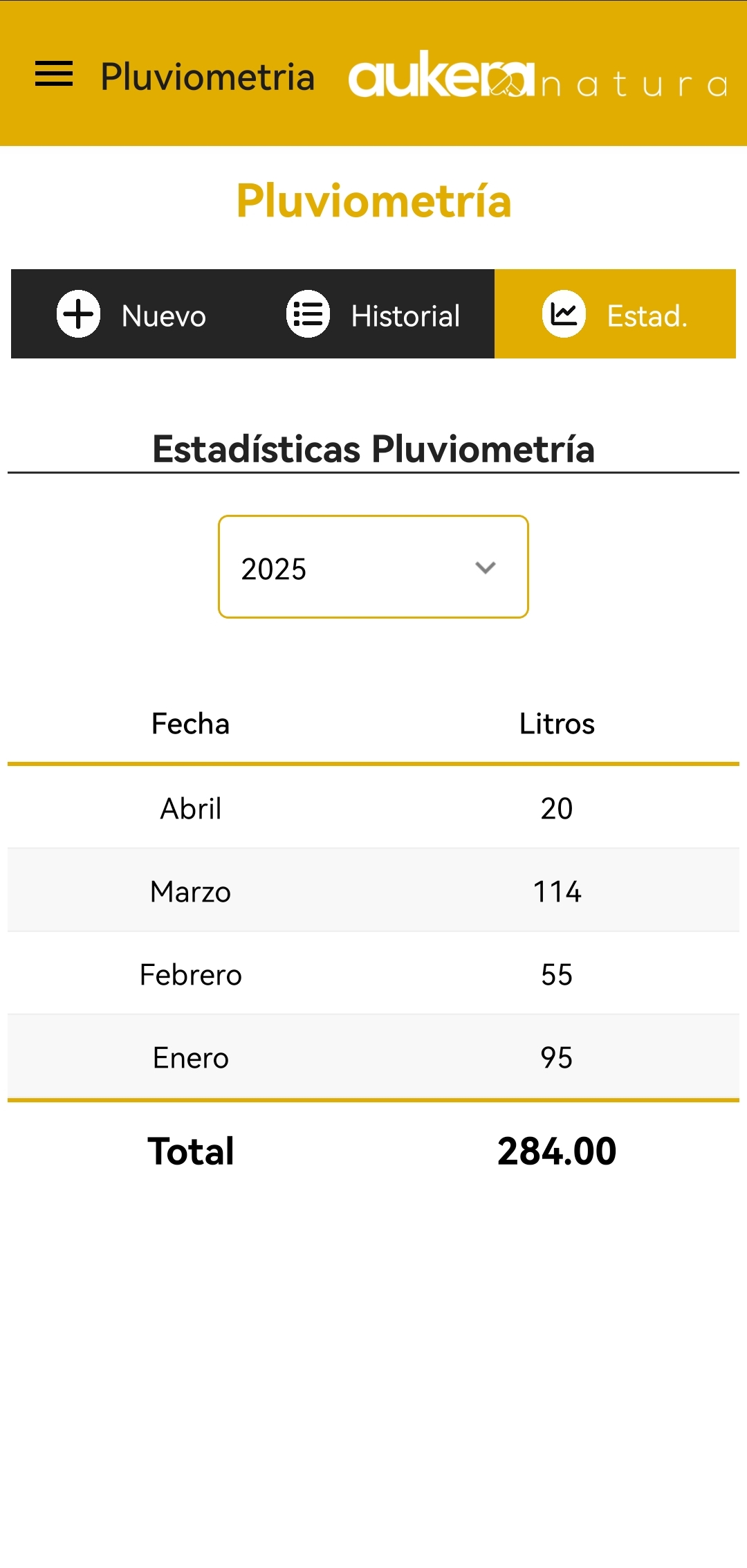 En cambio, en la sección Estadísticas podrás ver la pluviometría recibida durante todo un año.